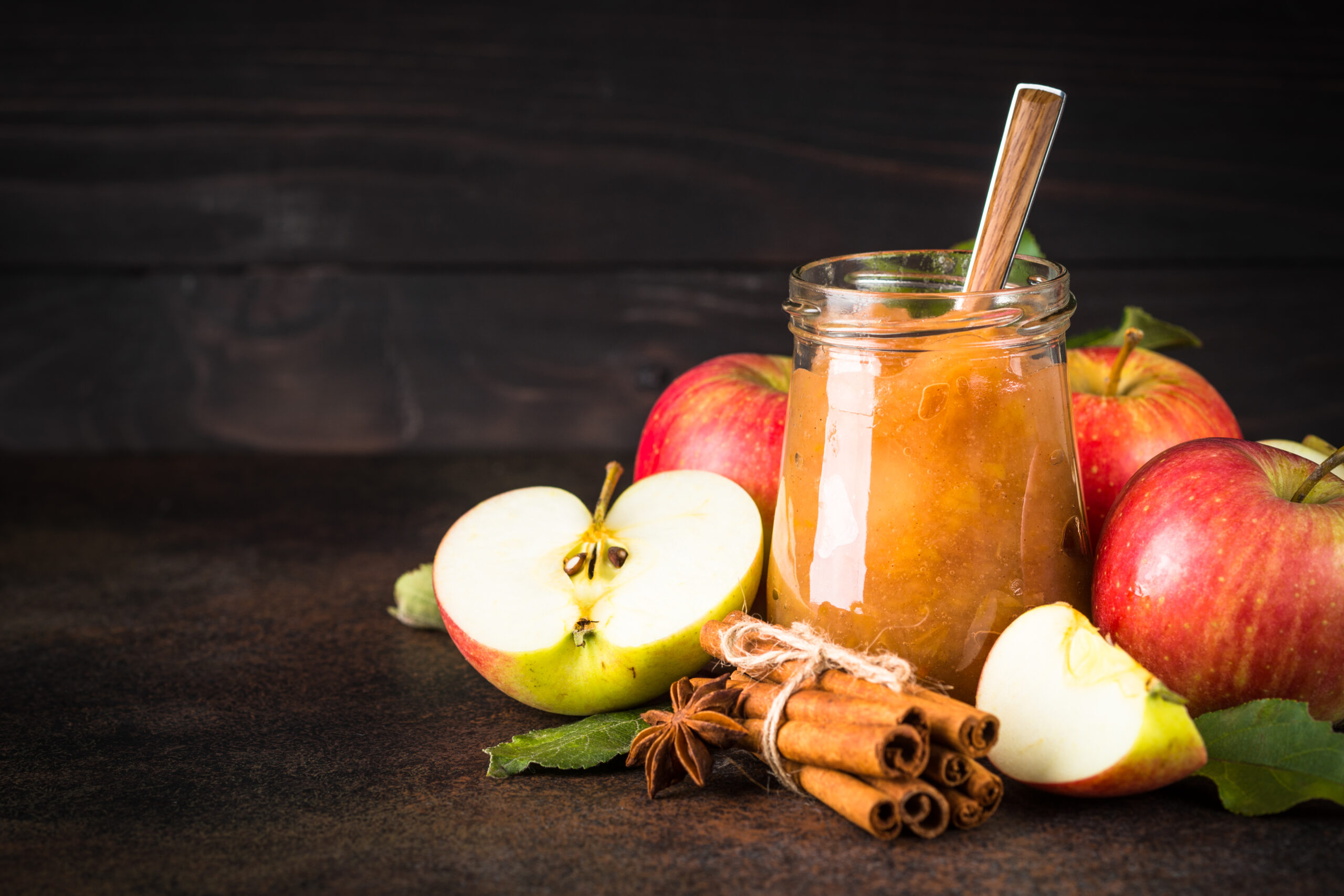 Apple jam with spices and fresh apples on dark background. Opublikowano 5 listopada, 2025 o 2560 × 1707 w Apple Butter Bourbon, przepis ← Poprzedni