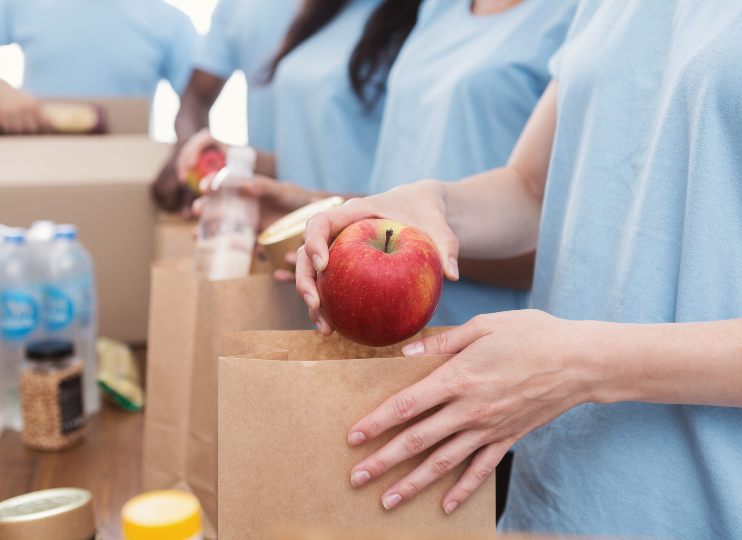 Volunteers packing food and drinks into paper bags Opublikowano 20 grudnia, 2025 o 2560 × 1862 w Bezpłatne programy żywieniowe dla seniorów